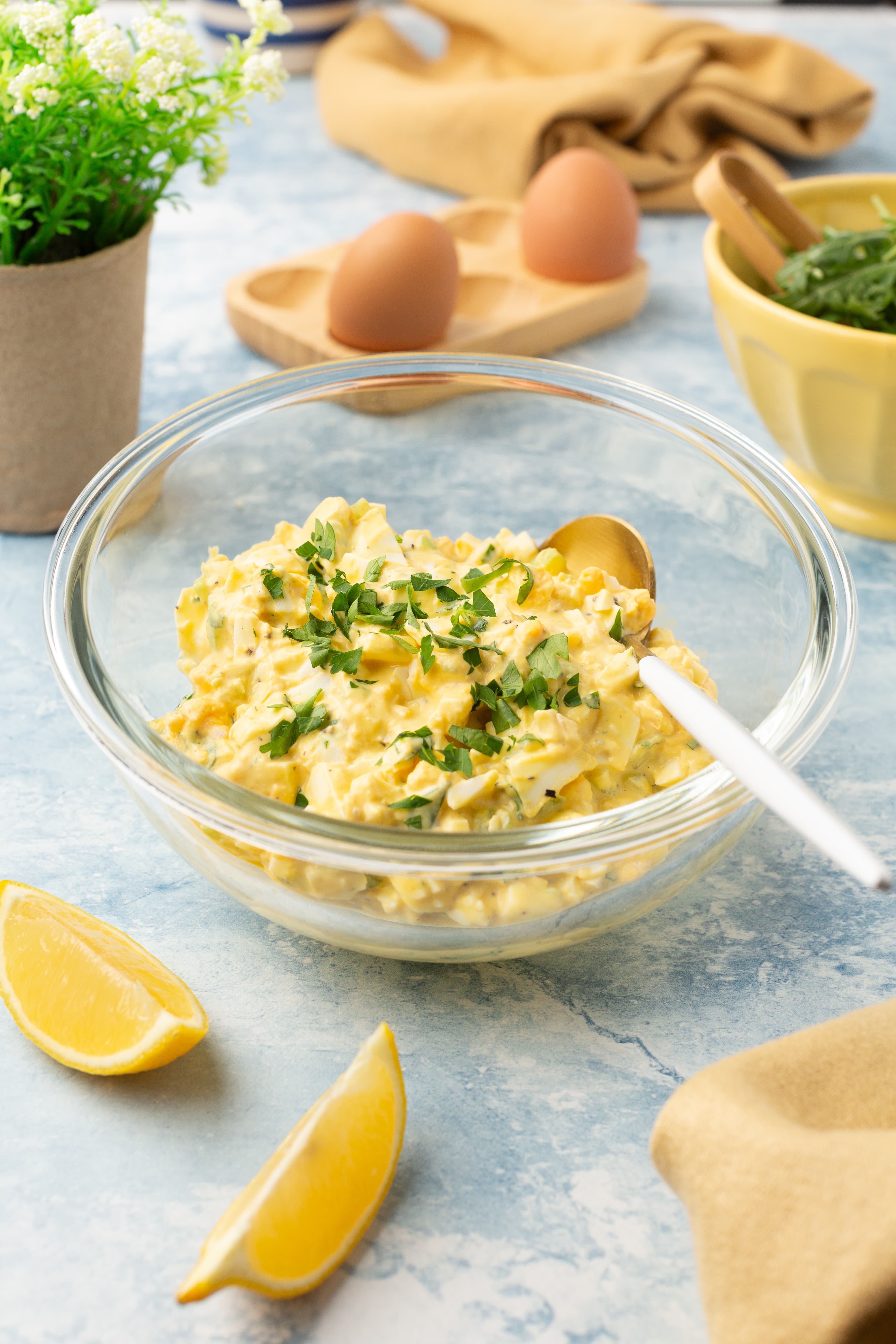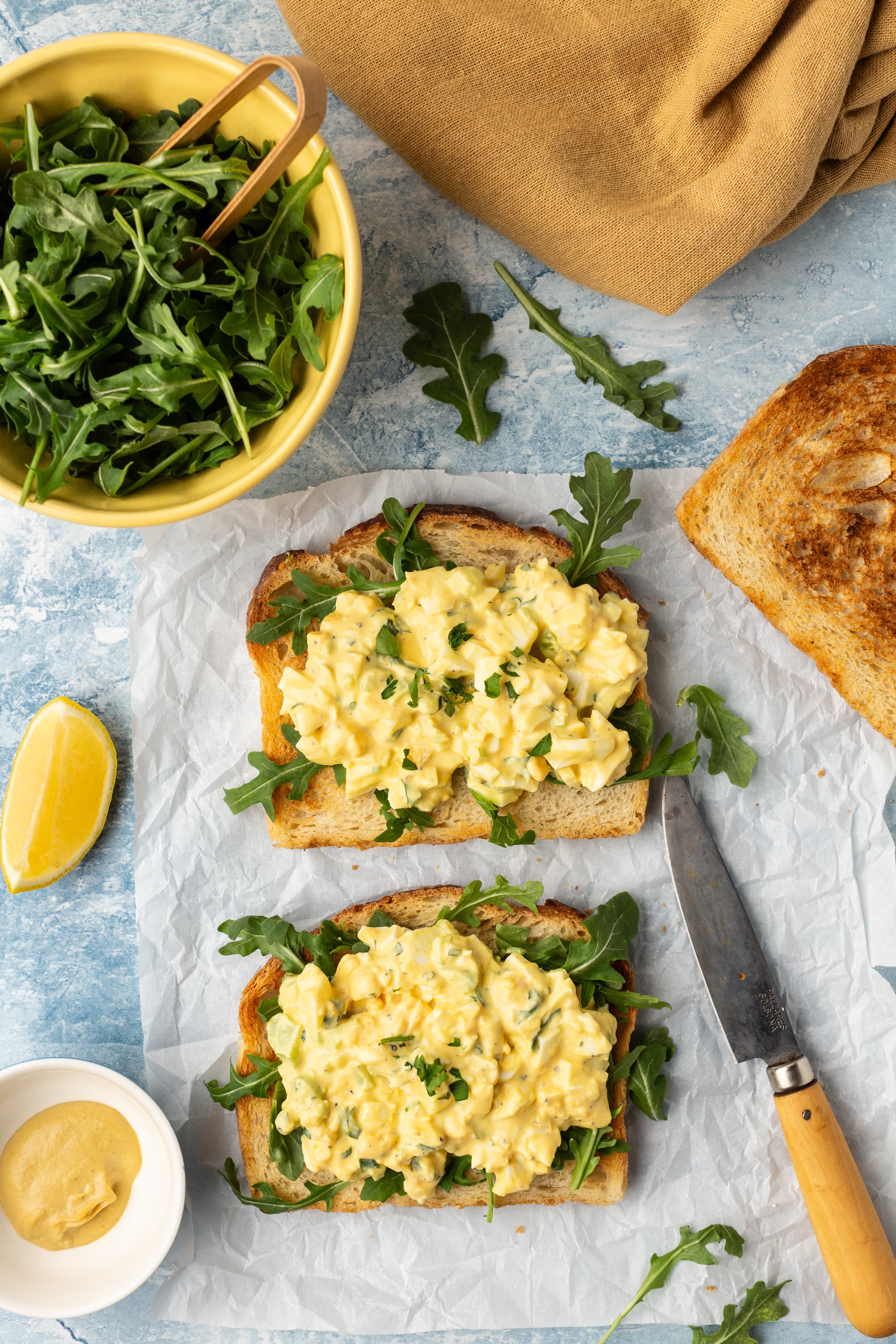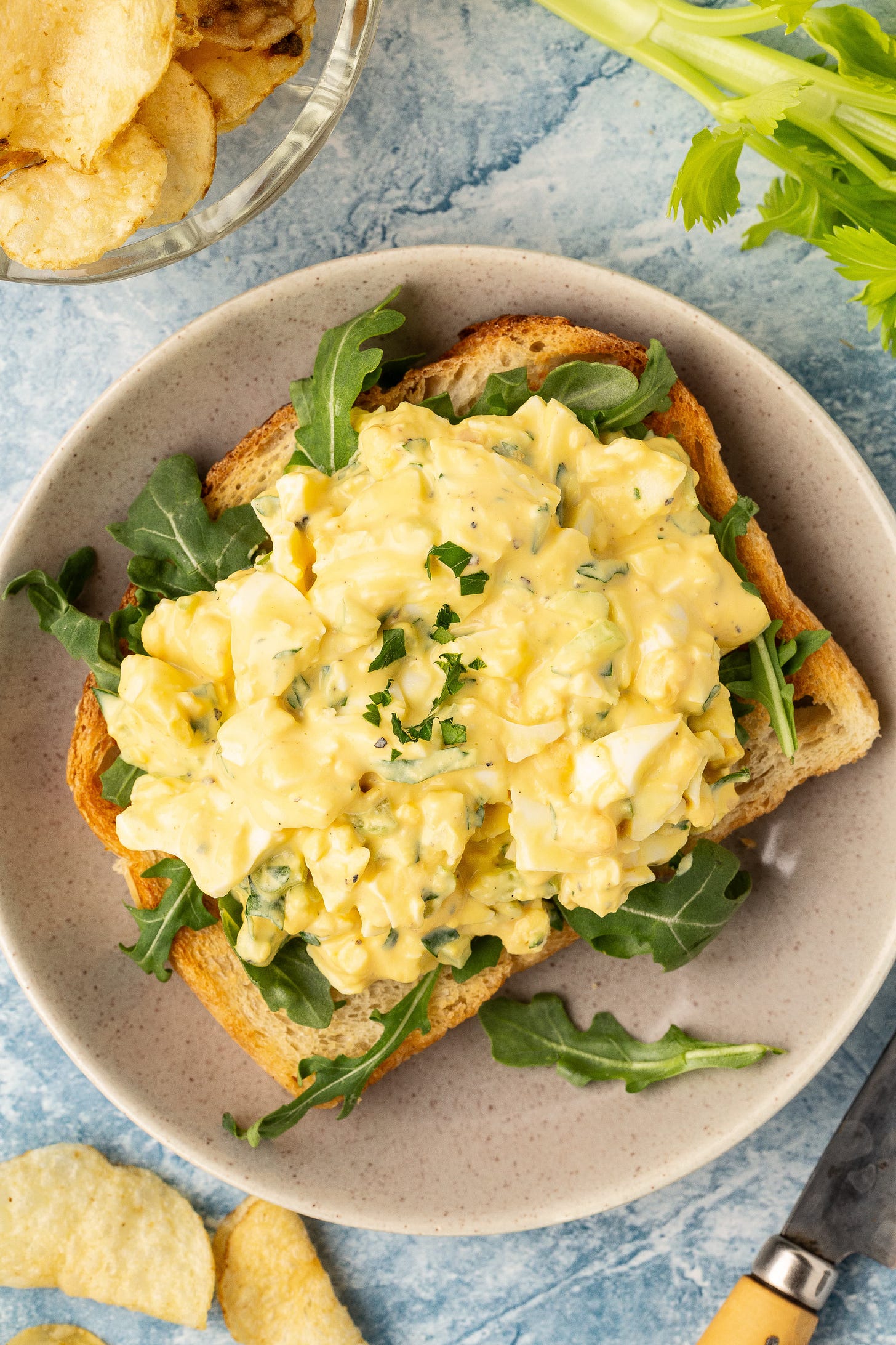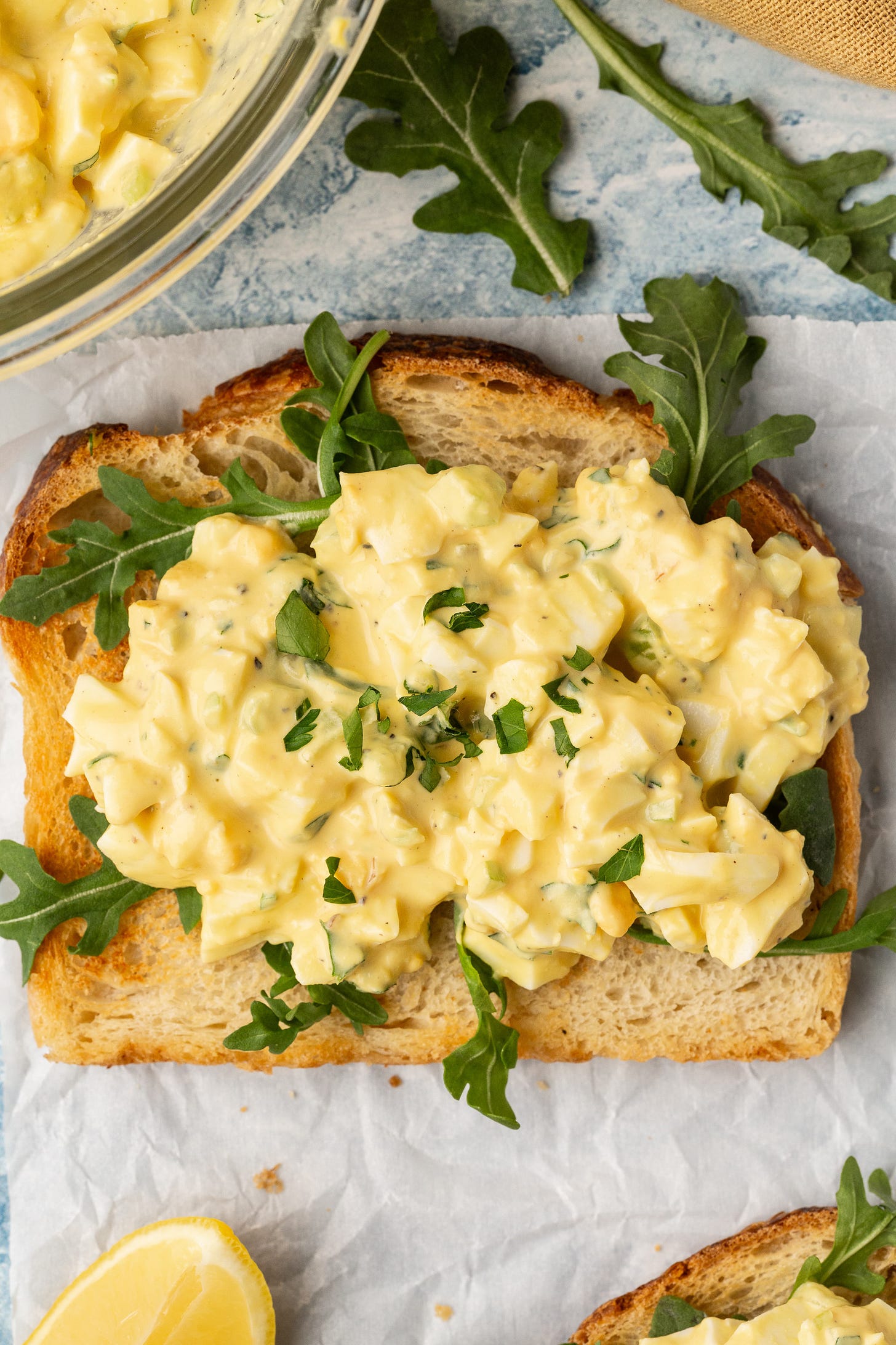 This is the egg salad I swear by and always come back to. It’s classic, tried and true, and lightly adapted from here.