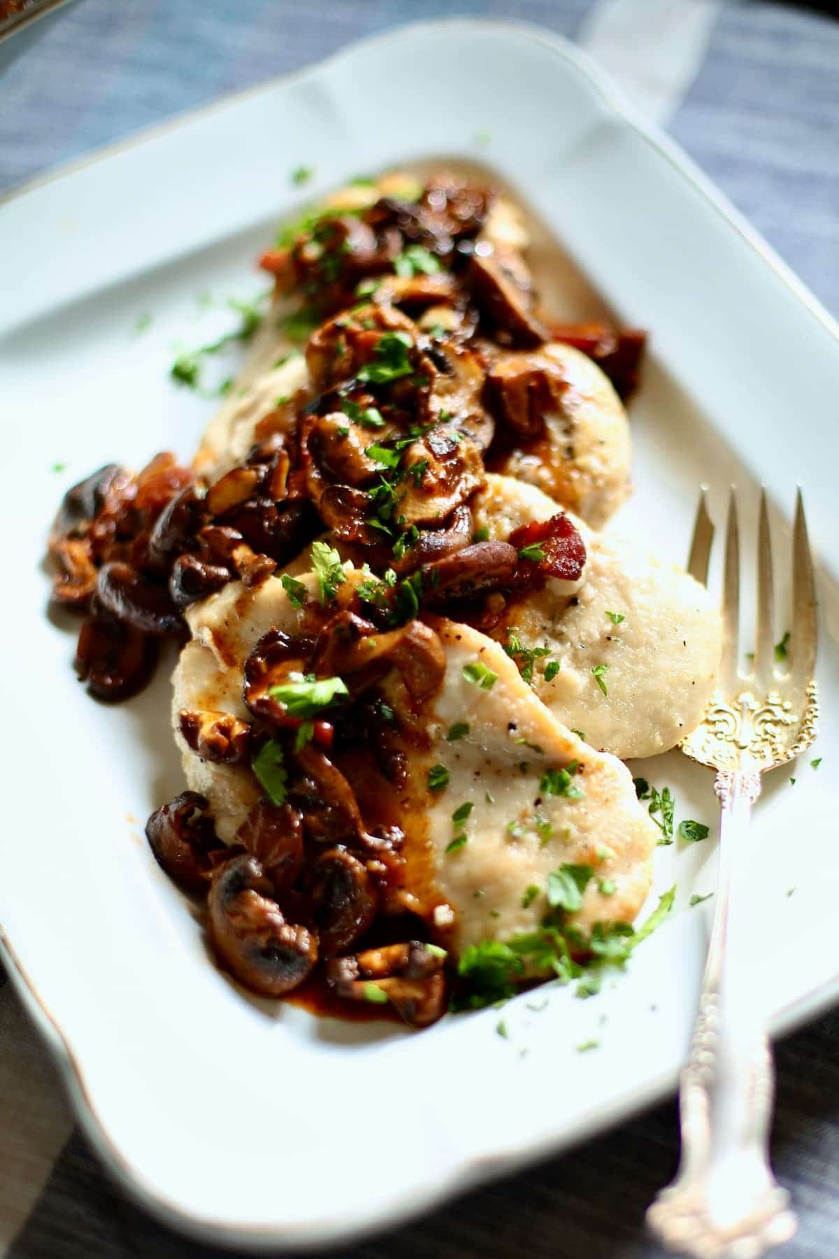 The flavors are incredible. While we typically don't drink Marsala wine on its own, the alcohol cooks out and leaves behind an incredibly flavorful piece of chicken.
