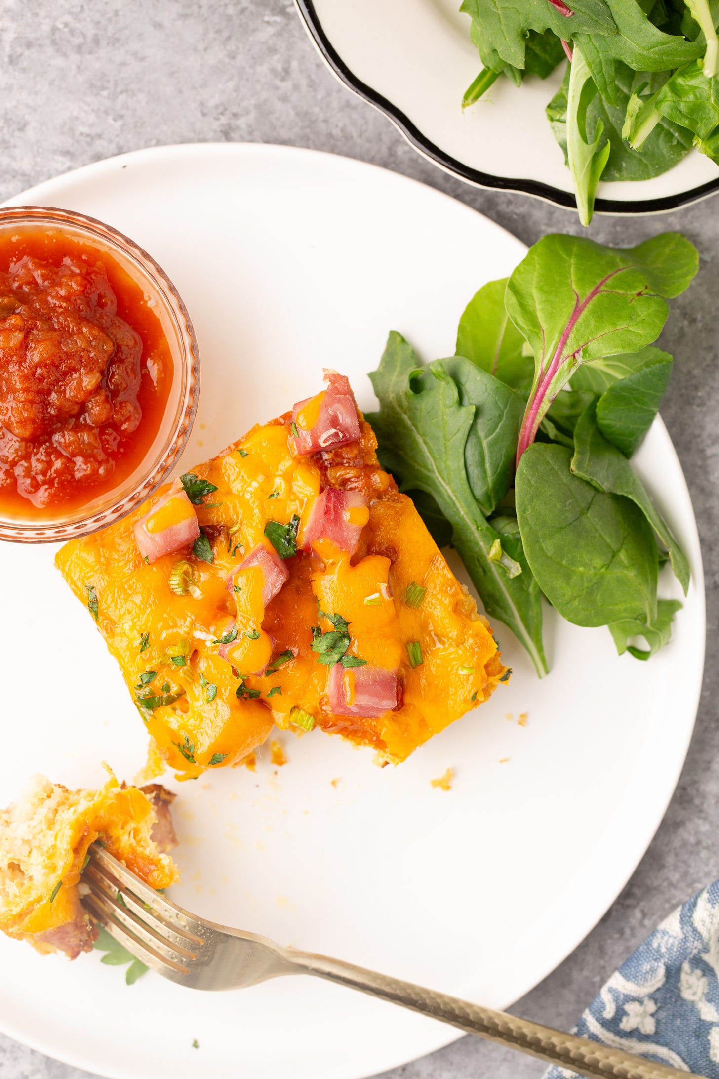 This recipe is flexible enough to handle all kinds of additions — caramelized onions, green chili, roasted red peppers, fresh herbs, broccoli florets, peas, or even bacon or sausage in place of the ham.