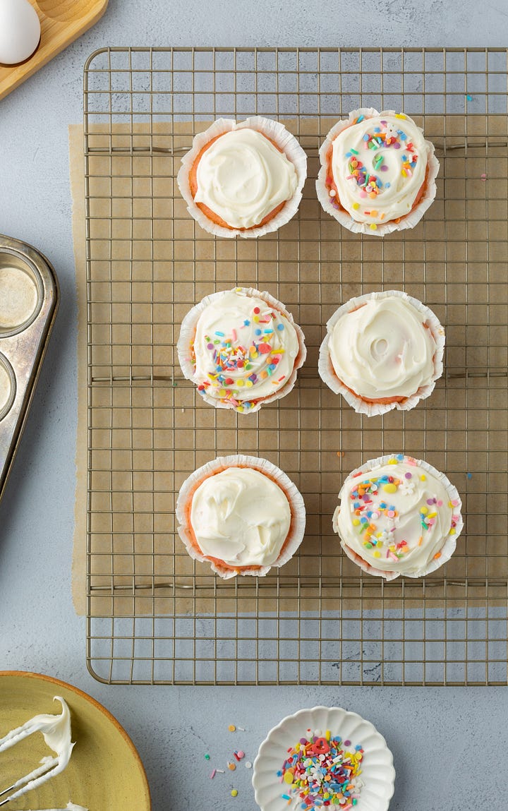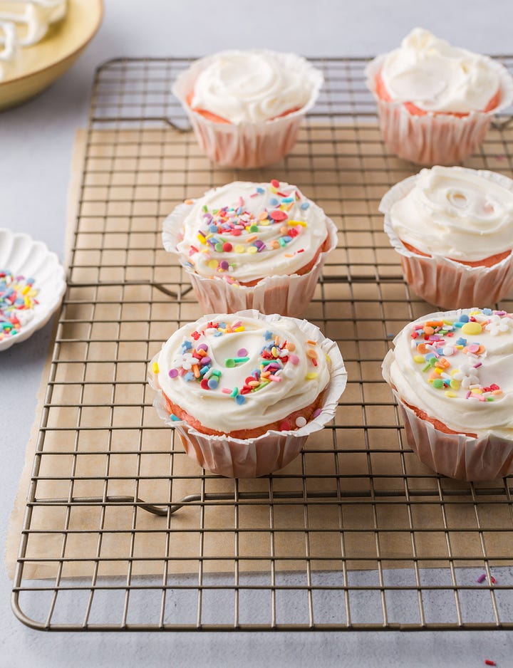 Spring is on the way, which feels like a good excuse to bake a batch of vanilla cupcakes.
