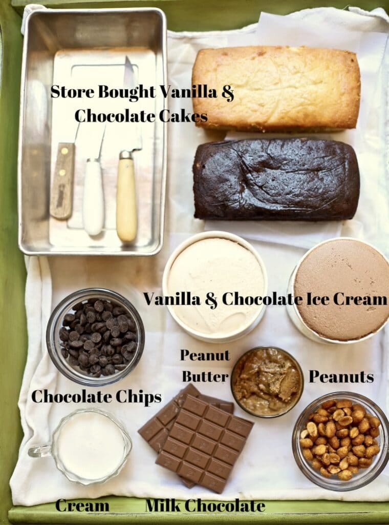 ▢ 2 Loaf cakes, store-bought, vanilla and chocolate (approx. weight of twelve ounces each)