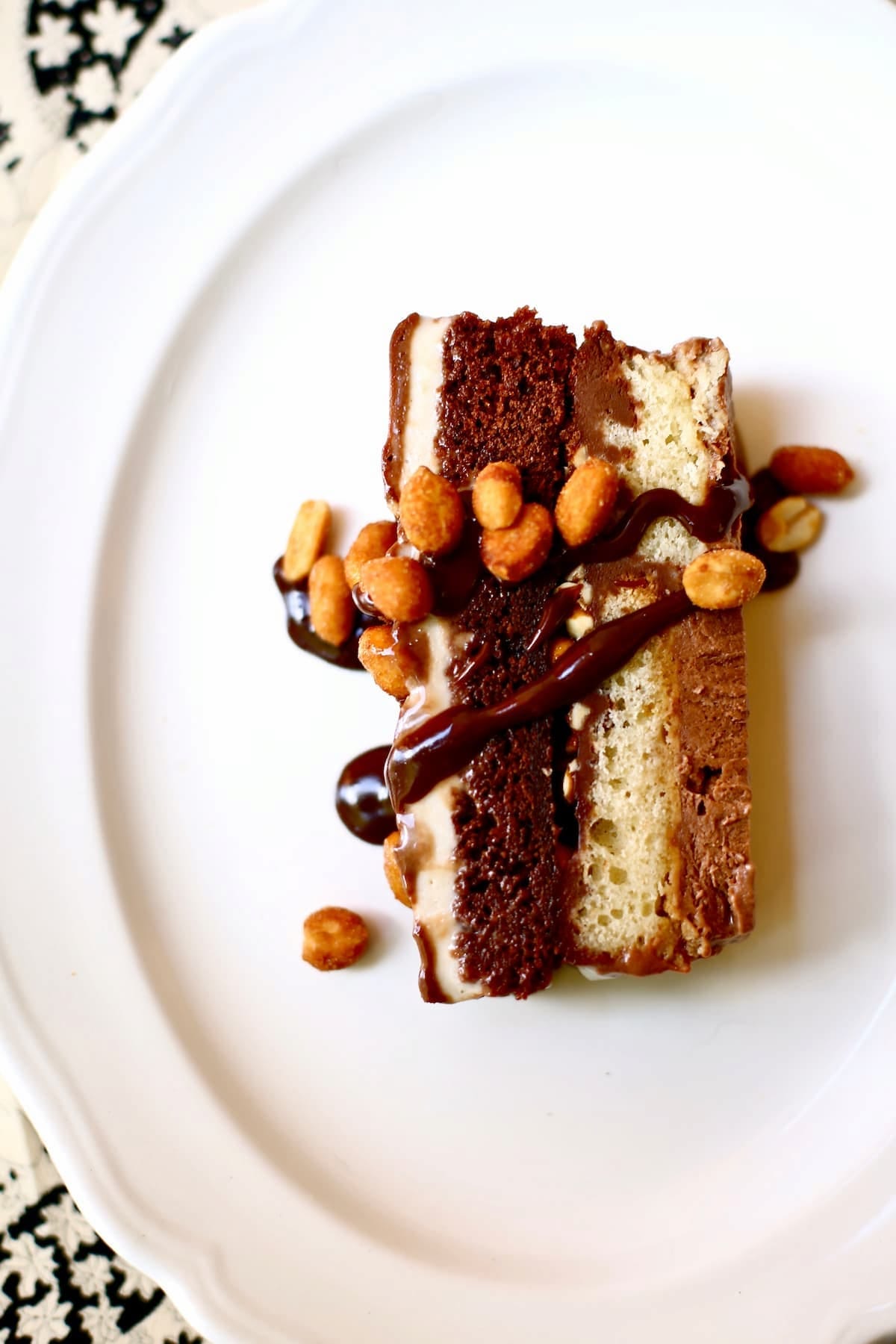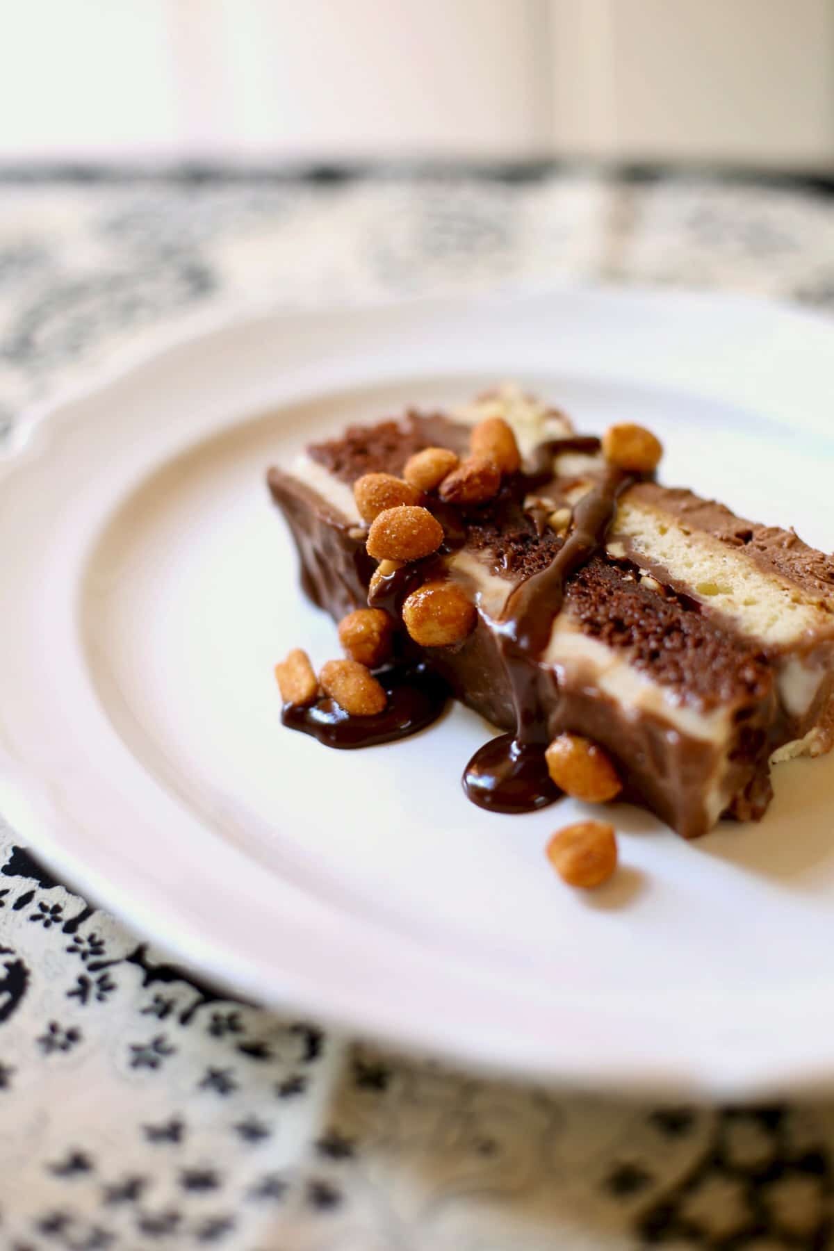 Ice Cream Cake with Peanut Butter Ganache is a no-fuss dessert everyone loves!