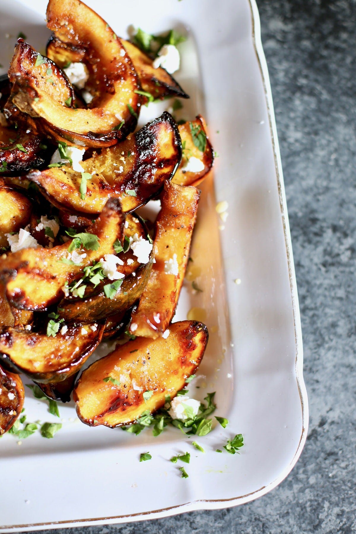 Maple Roasted Squash with Goat Cheese has crispy edges and creamy cheese, great side dish!