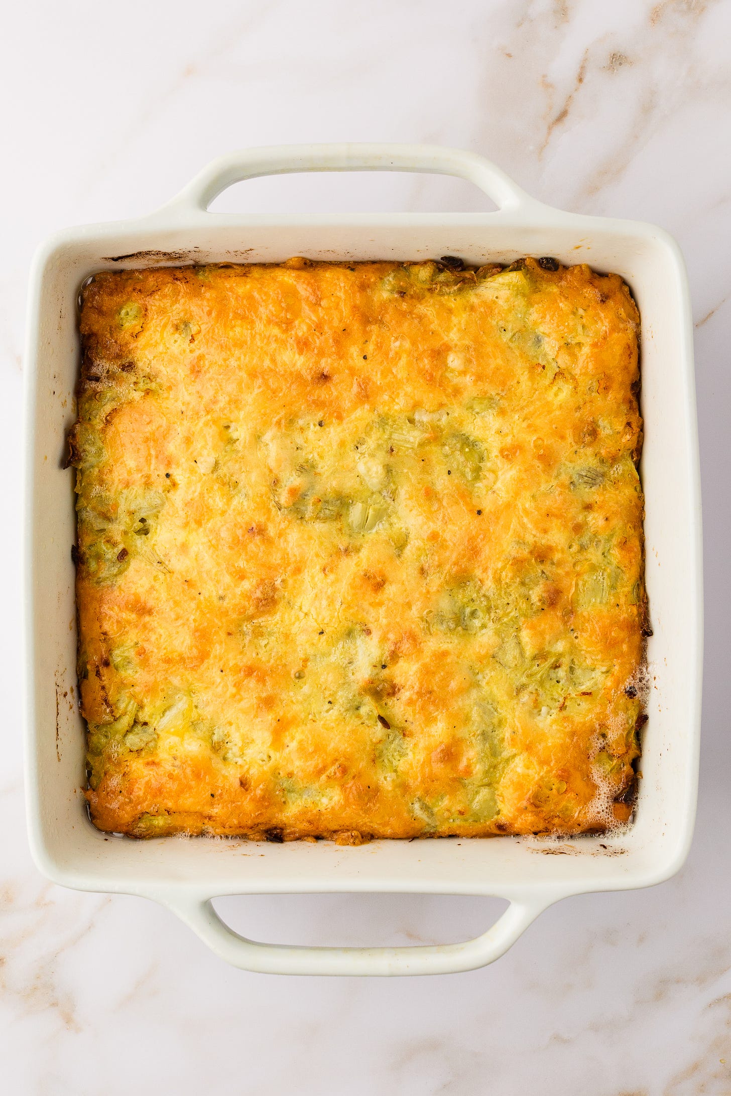 Pour the egg and cheese mixture over the top. Bake until set and golden brown on top, 25 to 30 minutes.