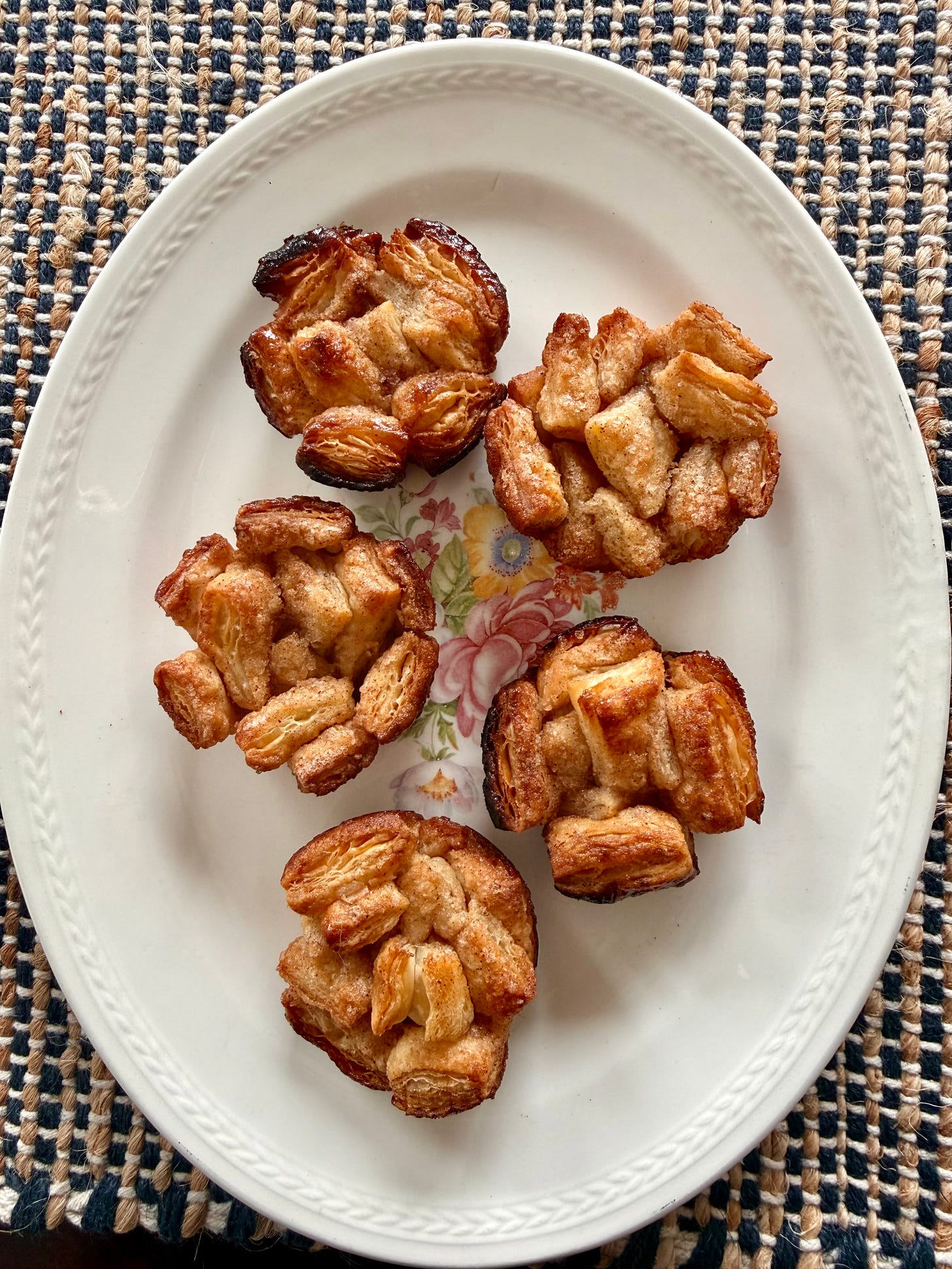 Then I tested a recipe for cinnamon pull-aparts made with puff pastry in a muffin tin, inspired by a fabulous one I had years ago that’s haunted me ever since.