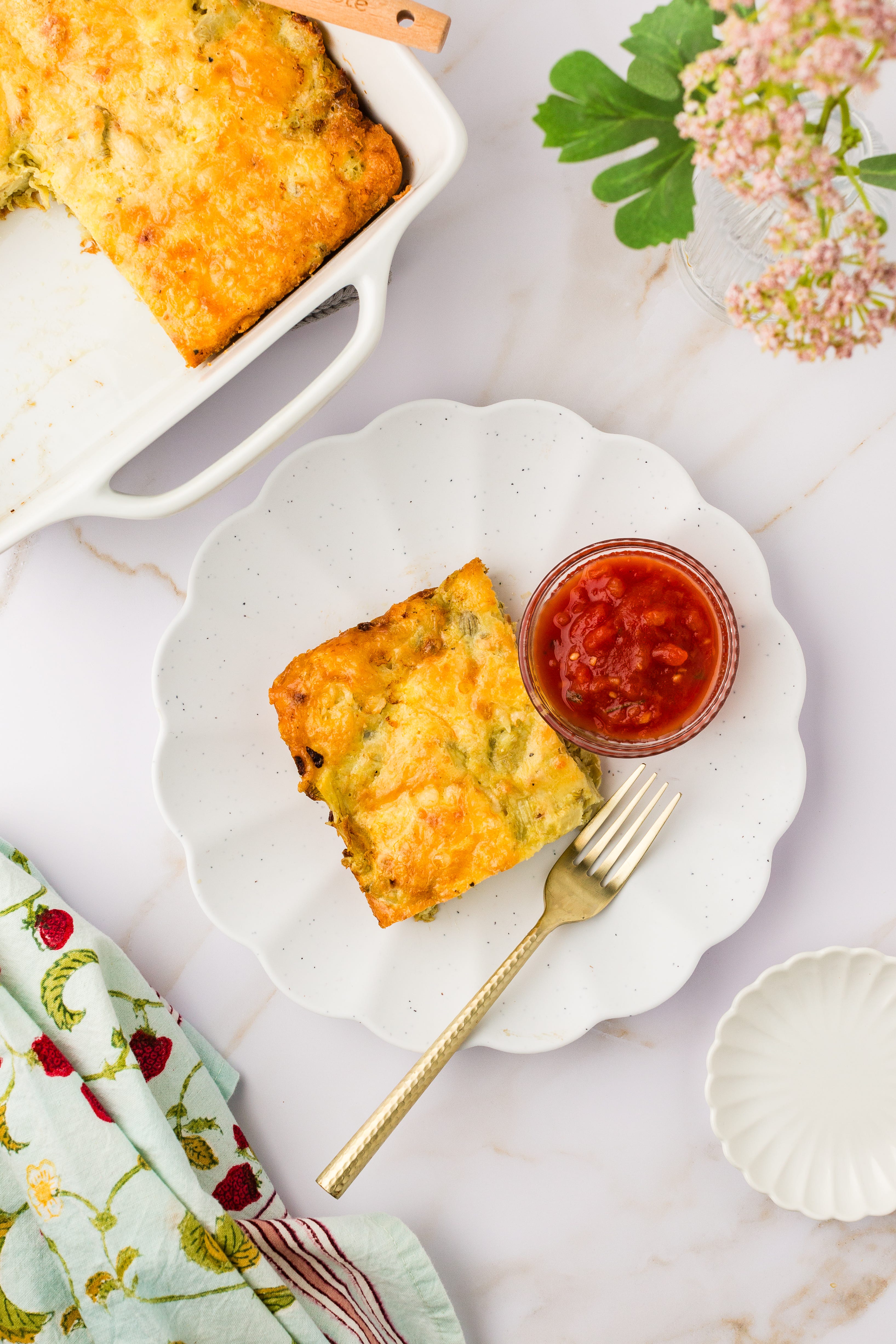 I’ve made it ever since — for breakfast or brunch, or cut into small squares as an appetizer. It’s simple and especially good with salsa.