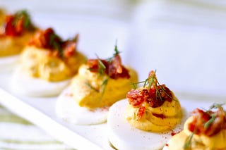 Deviled Eggs With Candied Bacon